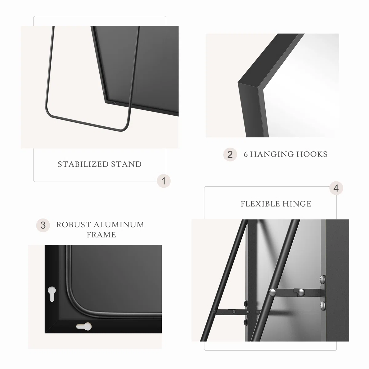 • High stabilization: This full body mirror has a stable stand, is not easy to turn over, and is lightweight to move for women.